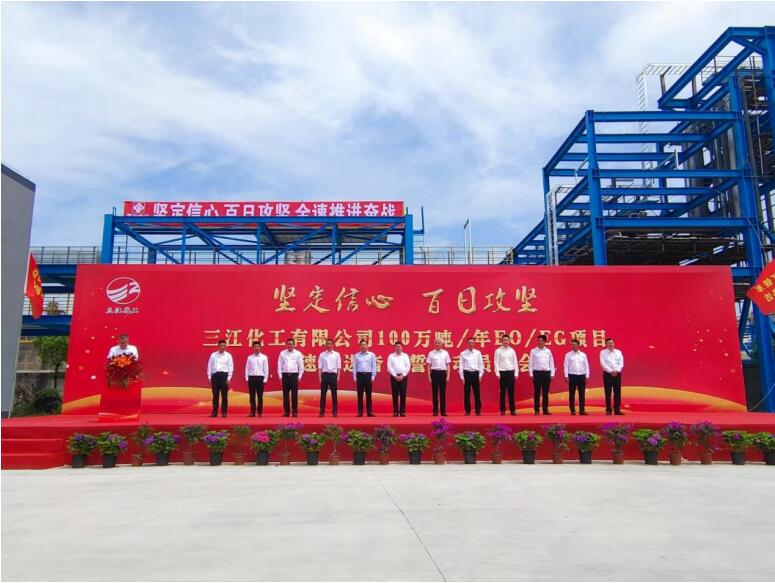 ——三江化工100萬噸/年EO/EG項目全速推進(jìn)奮戰(zhàn)誓師大會文/張銳 圖/龔曉菲 2022年6月8日上午,為響應(yīng)嘉興市和嘉興港區(qū)推出的“十大百日攻堅行動”方案,三江化工第一時間舉行了“三...
